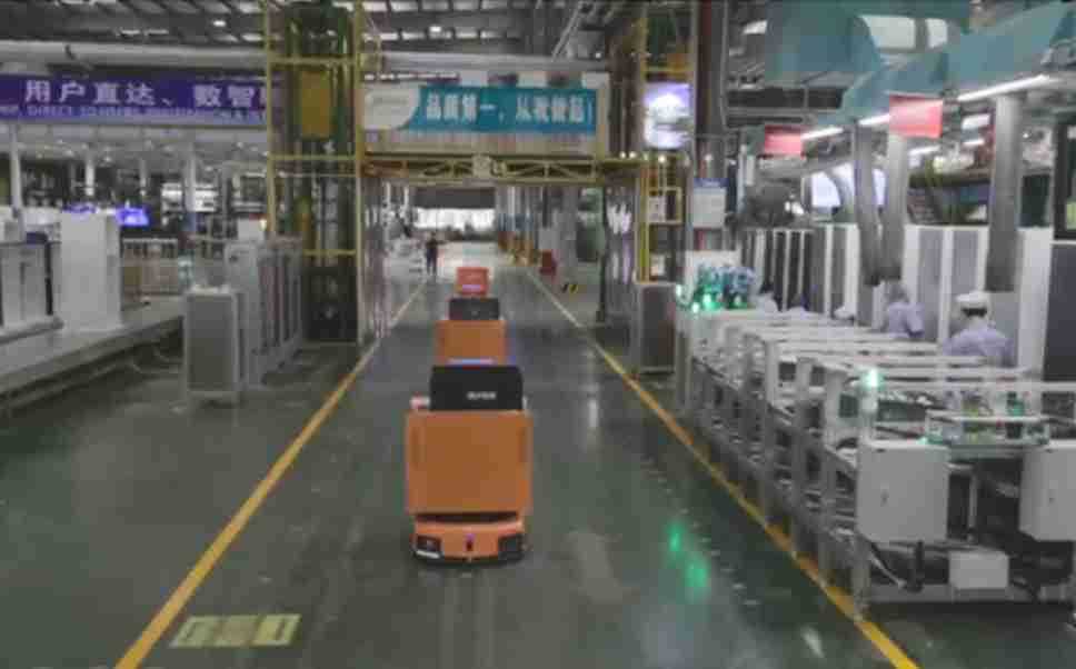 为车载冰箱物流配送打造的智能解决方案,,,包含产中物流通过潜伏举升AMR搬运至线边,,产后成品物流智能仓储,,,,流程包含产中物流智能齐套入库,,,,线边安灯叫料AMR智能配送至线边,,,,成品入库、、、、出库,,,,通过无人堆高车机器人,,,,智能仓储管理替代人工作业管理,,,,实现更高存储、、、、更高效率、、、、更具柔性化的解决方案。。。。
